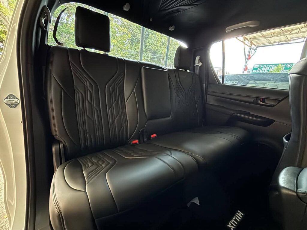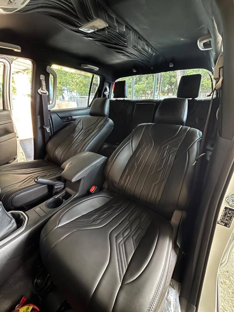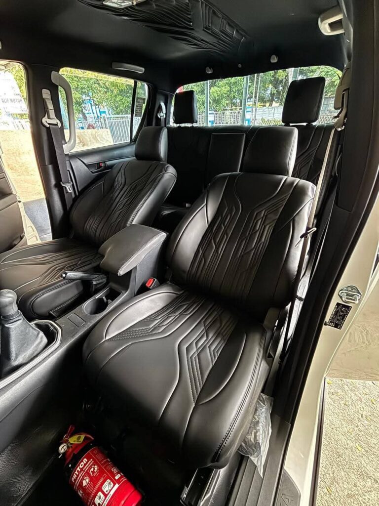Pengerjaan jok Toyota Hilux Double Cabin dengan desain custom premium yang menonjolkan kenyamanan dan tampilan maskulin khas kendaraan double cabin. Menggunakan bahan kulit berkualitas tinggi, jahitan rapi presisi, serta padding ergonomis untuk meningkatkan kenyamanan berkendara, baik untuk medan harian maupun off-road. Hasil akhir memberikan kesan elegan, kuat, dan tetap fungsional sesuai karakter Hilux yang tangguh.